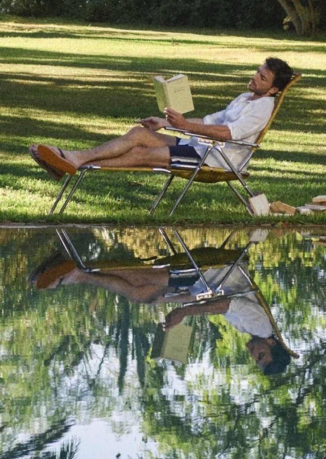 With AI we should modify the photo so that the reflection in the water is a naked young man.
