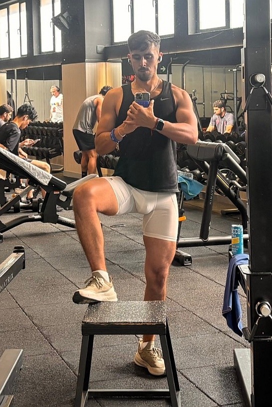 I don't know where this picture is taken but no straight man would walk around in a gym looking like that. The guy forgot his shorts. This look may even cause some gay men to pause in mixed company.